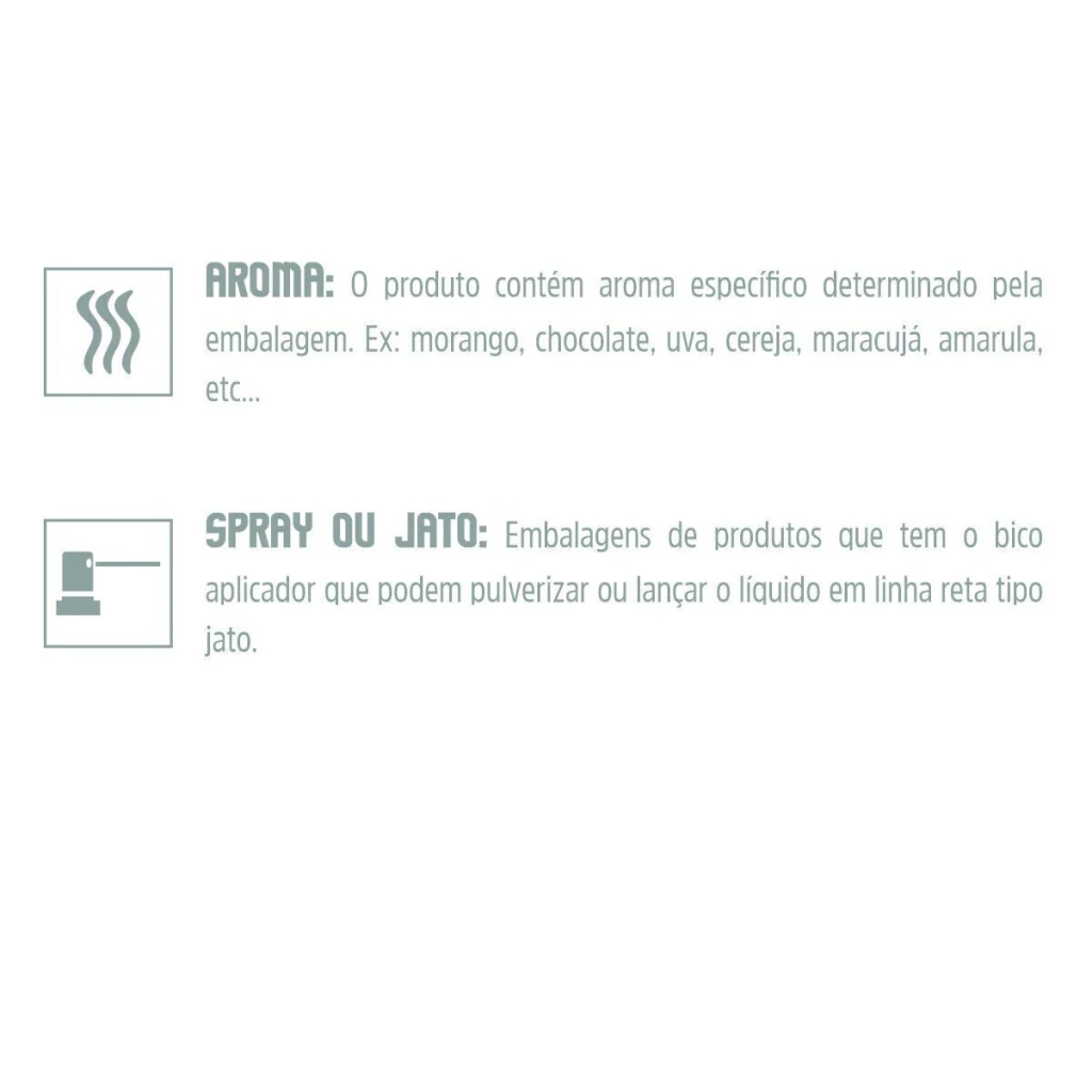 -Morango: Alcohol (Álcool etílico), Aqua (Água), Parfum (Perfume), Propylene Glycol (Dextrolimoneno), Benzyl Salycilate (Salicilato de Benzila), Coumarin (Cumarina), Linalool (Linalo), Trienthy Citrate (Citrato de Trietila), Haxil Cinnamal (Haxil Cinamaldeido), CI 16185 (Vermelho Amaranto).