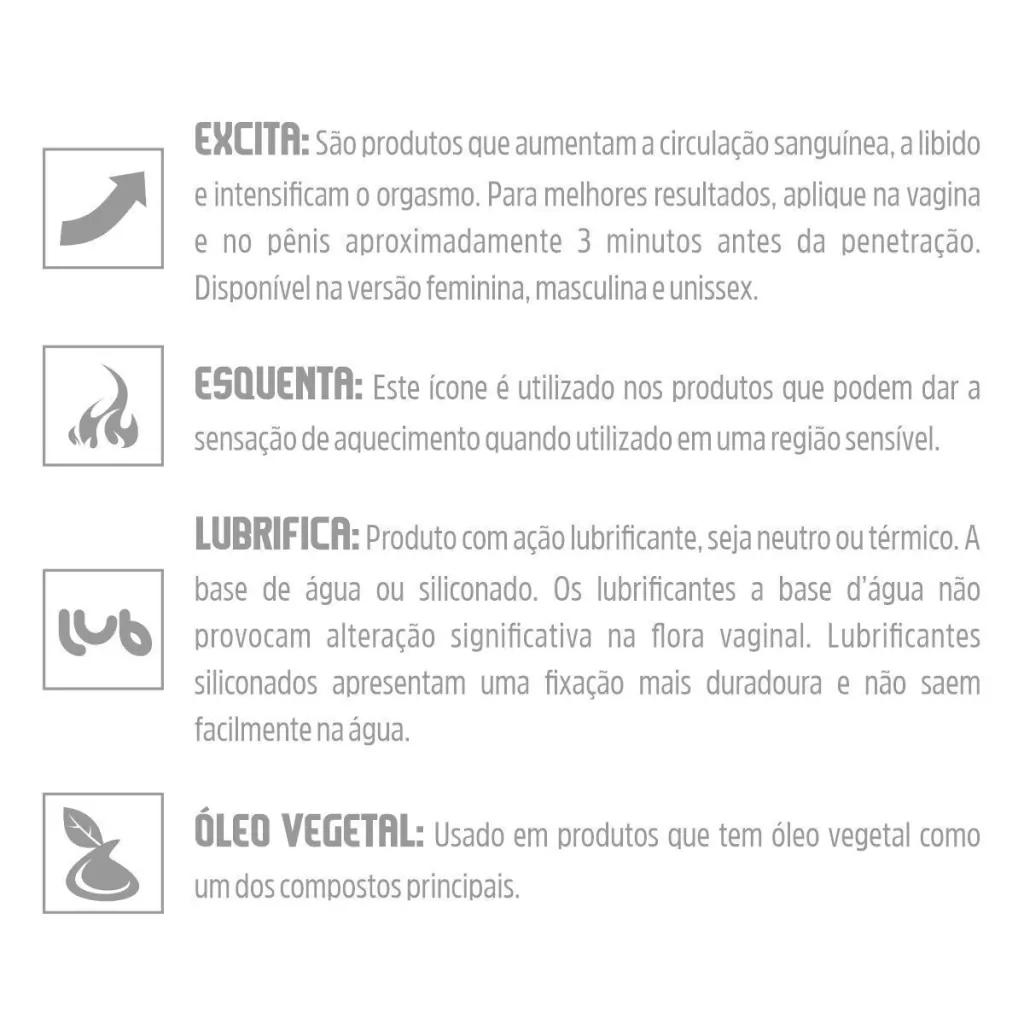 MODO DE USO: Estoure a bolinha e passe o líquido na região intima, nos grandes lábios e internamente. Ou se preferir pode passar no pênis do parceiro e introduzir.