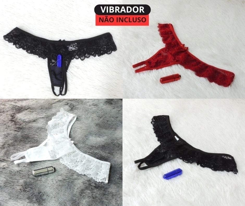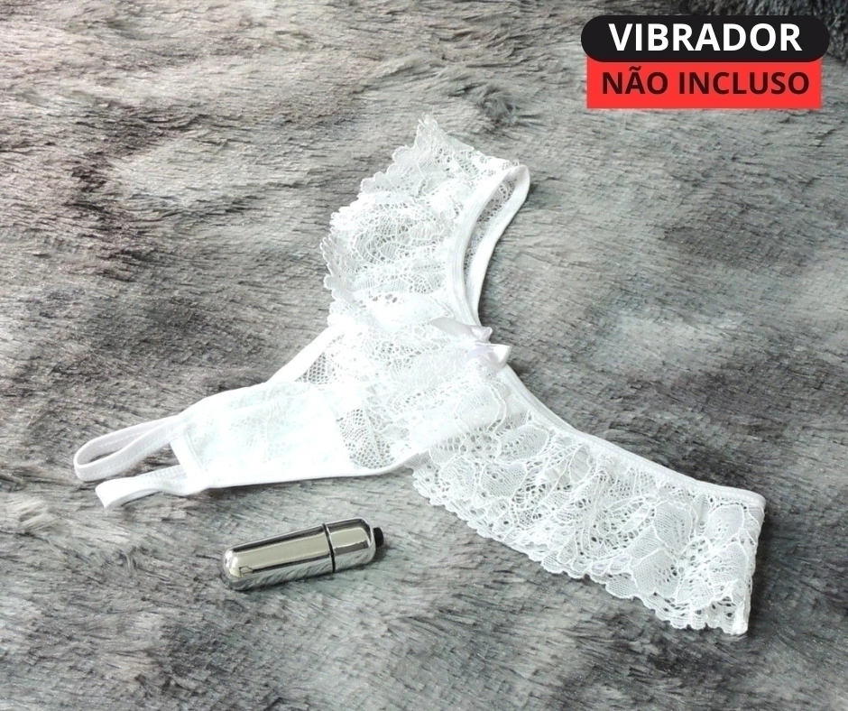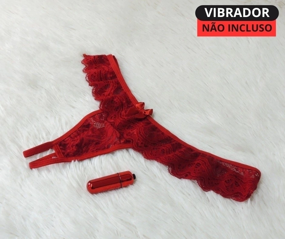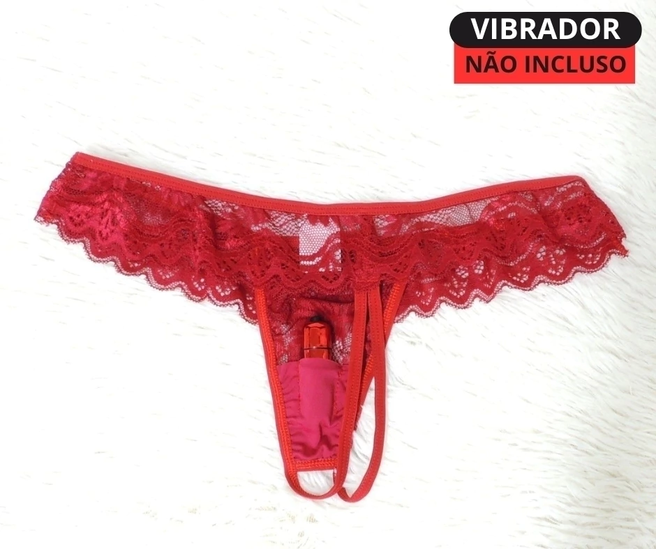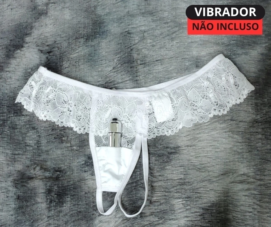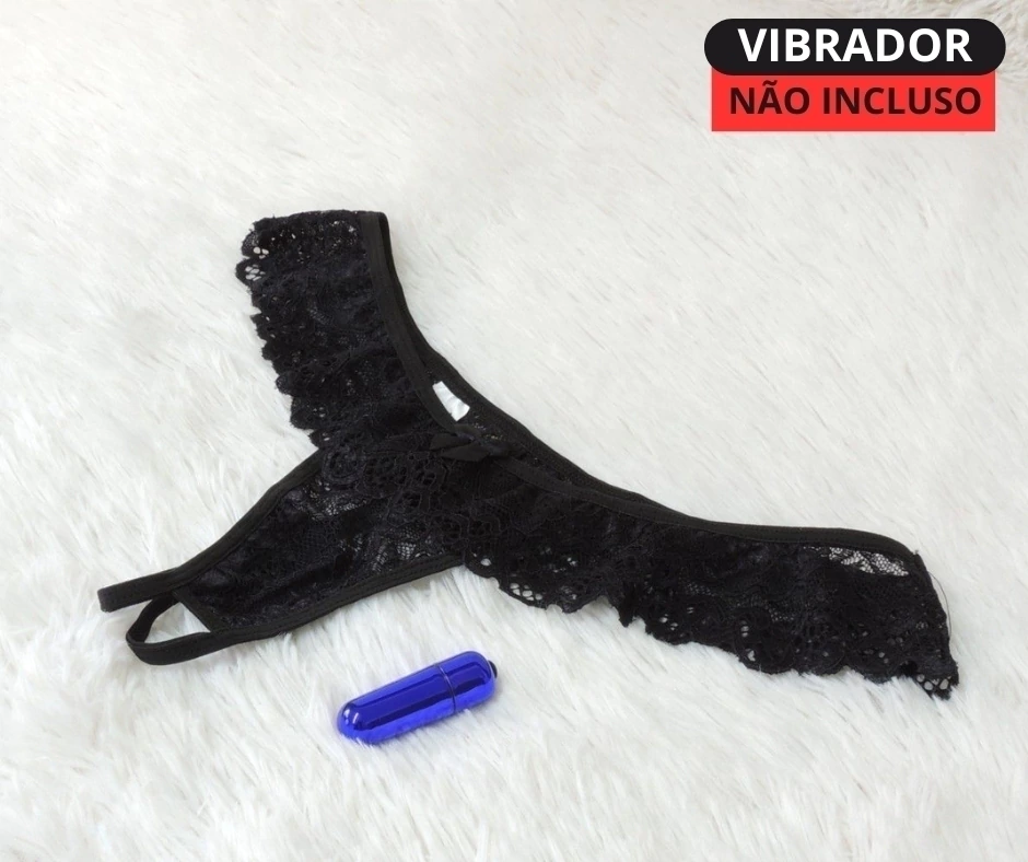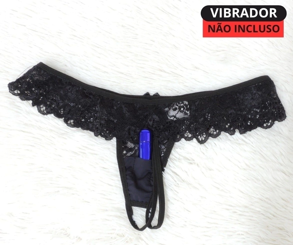 Em sua parte interna, você pode incluir um vibrador estilo bullet . A calcinha possui abertura entre as pernas facilitando a penetração.