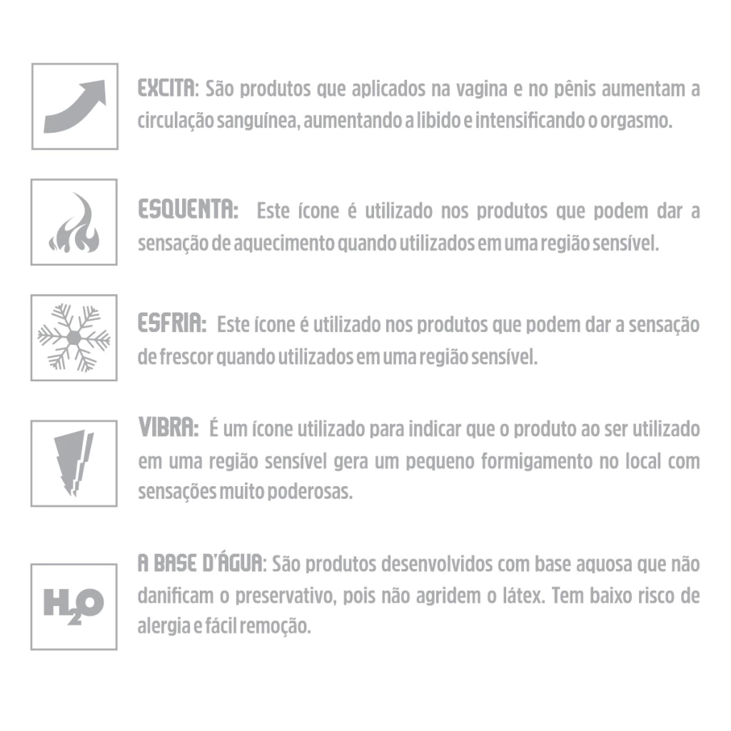 MODO DE USO: Aplique uma pequena quantidade do gel em toda a região íntima (Clitóris, vulva, pequenos e grandes lábios). Utilize 3 a 5 minutos antes da penetração.