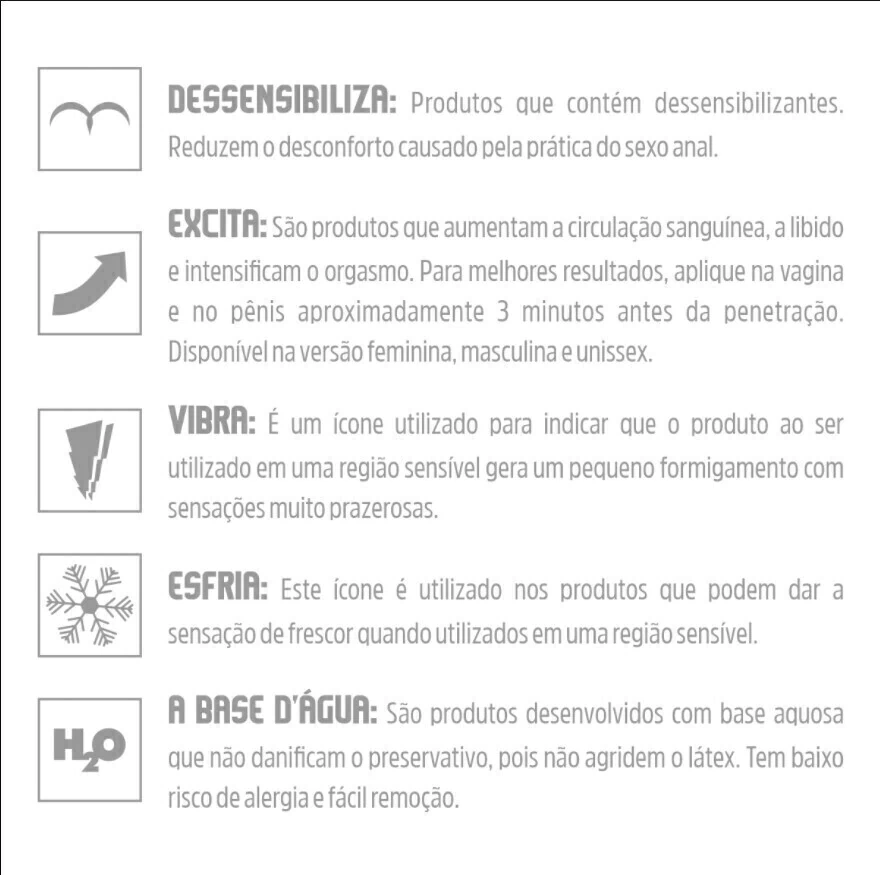 MODO DE USO: Aplique a quantidade desejada do produto na região anal, com o auxílio dos dedos faça movimentos suaves. Use de 3 a 5 minutos antes da penetração para que o produto faça efeito