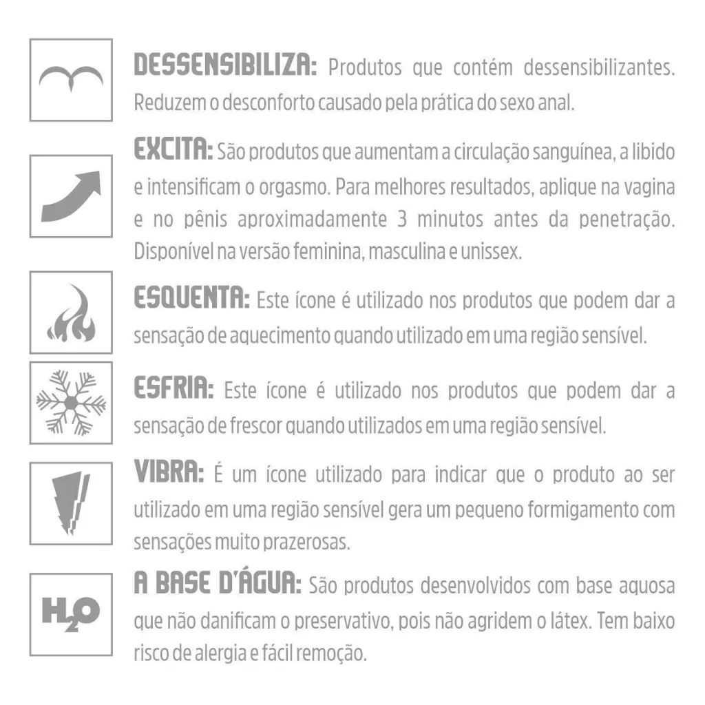MODO DE USAR: Aplique a quantidade desejada na região anal, com o auxílio dos dedos introduza 2 cm dentro do canal anal. Utilize 3 a 5 minutos antes da penetração.