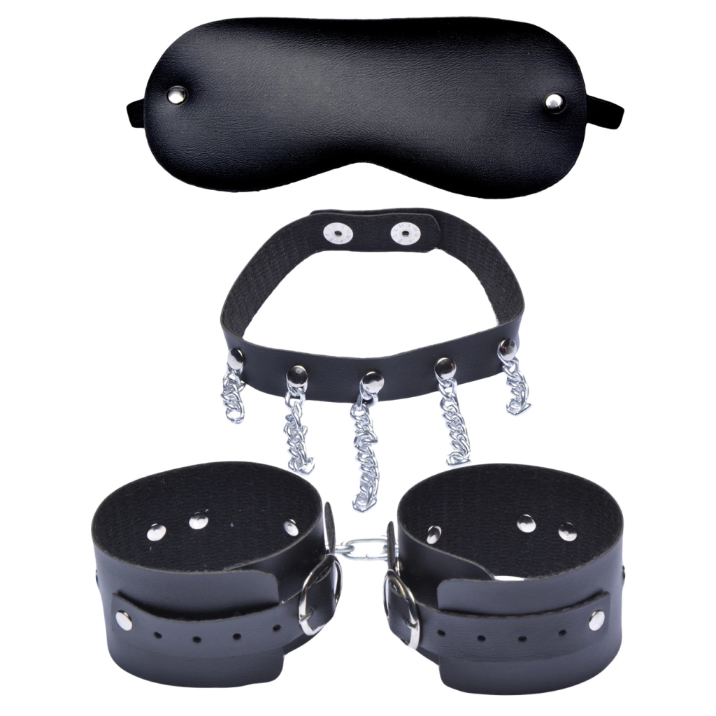 KIT ALGEMA BRACELE COM COLEIRA E VENDA TAPA OLHO - DOMINATRIX