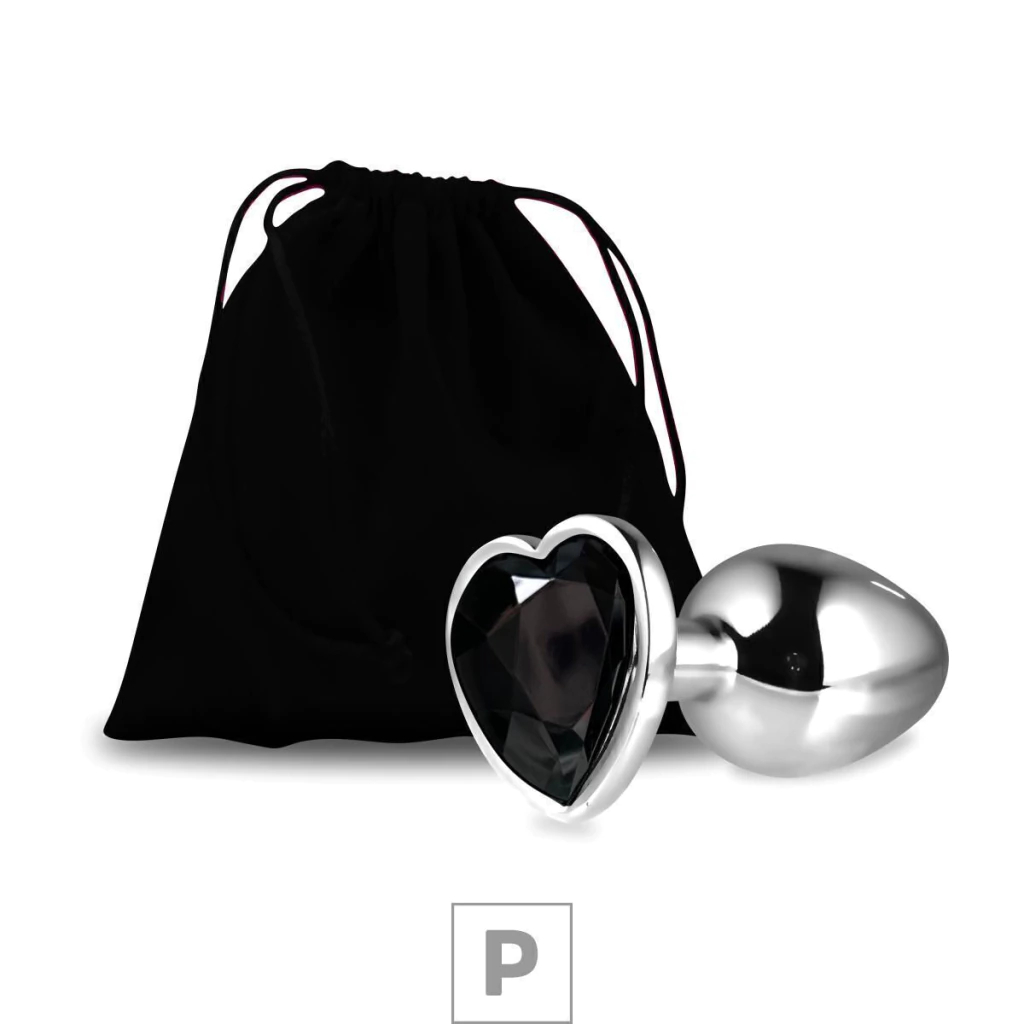 01 Plug Metálico P com Pedra Preta em Formato de Coração