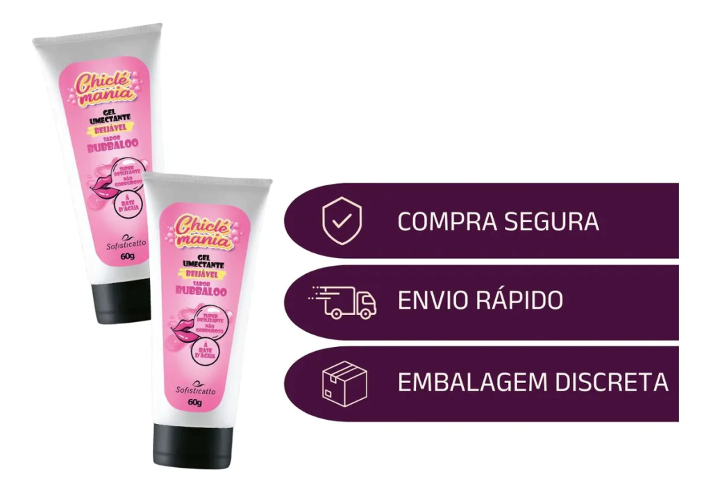 O Lubrificante Beijável Chiclé Mania proporciona uma lubrificação intensa e confortável, imitando a lubrificação íntima natural feminina. Ideal para penetração suave e prazerosa, também permite sexo oral graças ao seu delicioso sabor e aroma de chiclete.