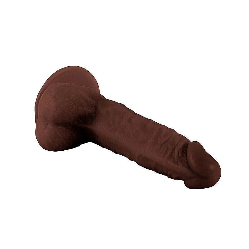 Prótese realística em forma de pênis, confeccionado em TPE possui glande definida, textura de veias, escroto e ventosa para penetrações em ângulo reto.