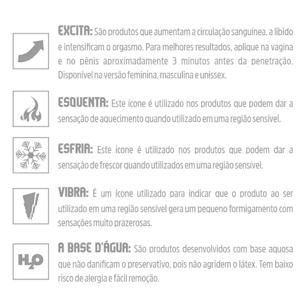 Em sua formulação possui compostos que conseguem esquentar, esfriar e vibrar, proporcionando novas sensações e uma excitação muito gostosa.