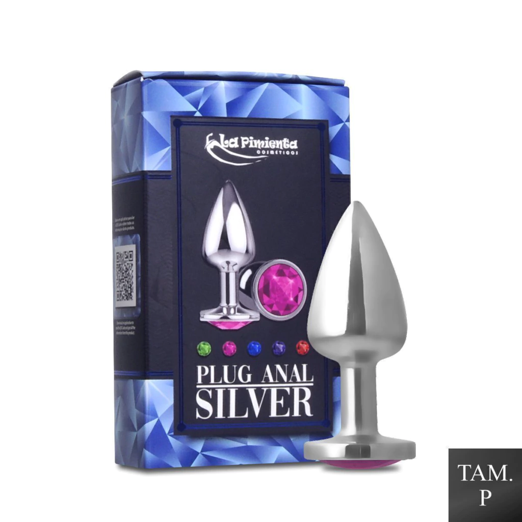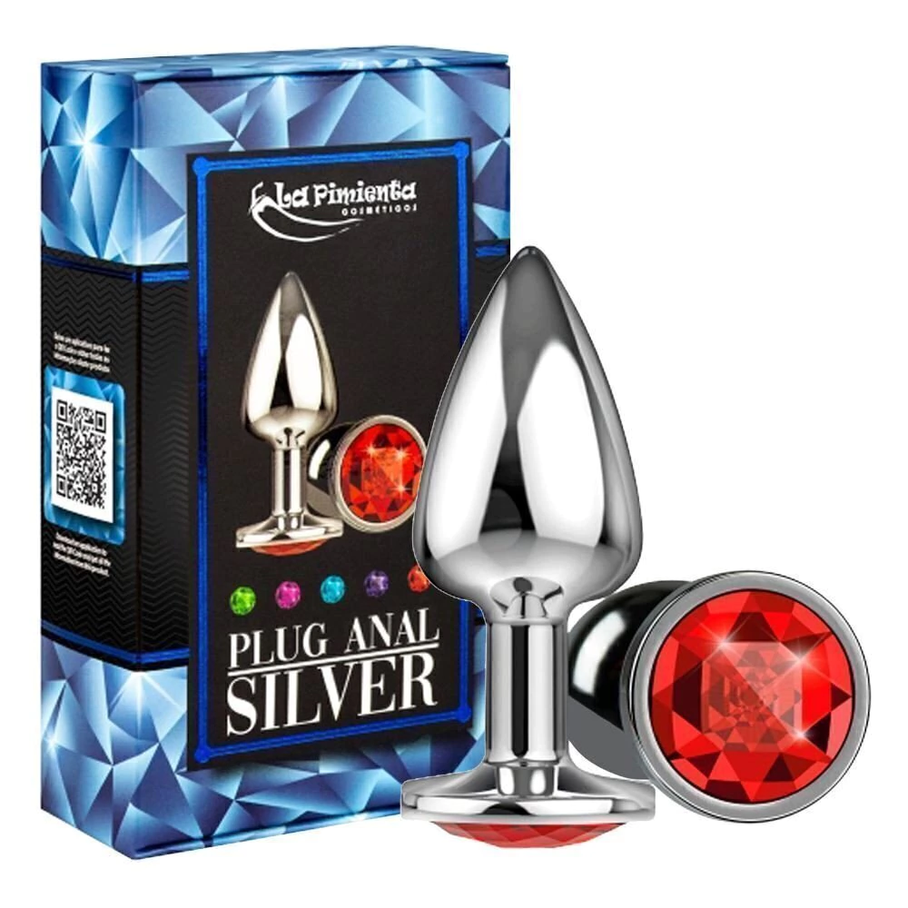 PLUG ANAL SILVER PEQUENO COM PEDRA LA PIMIENTA VERMELHO