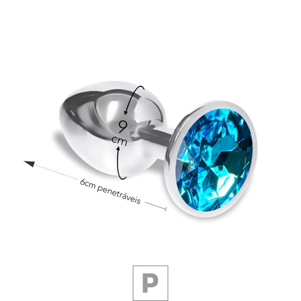 PLUG DE METAL P CROMADO COM STRASS 6CM PEDRA AZUL CÉU