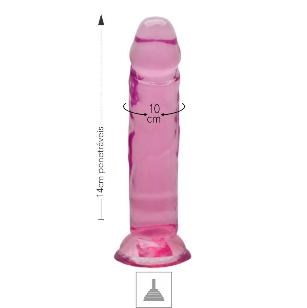 Ela imita a textura, o relevo, a forma e o tamanho dos pênis reais, além disso ela vem com ventosa que fixa em qualquer superfície lisa.