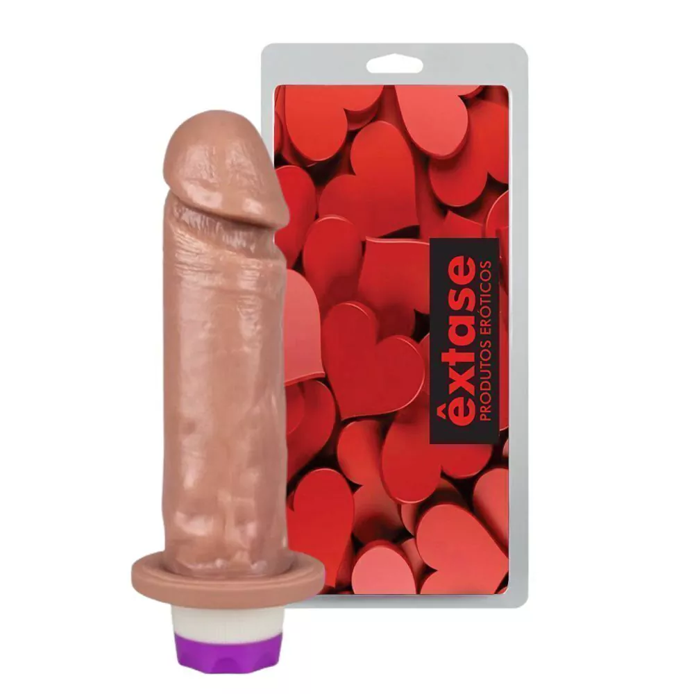 PRÓTESE REALÍSTICA 15X4CM com vibração multivelocidade, acionada a partir de um botão de giro em sua base.