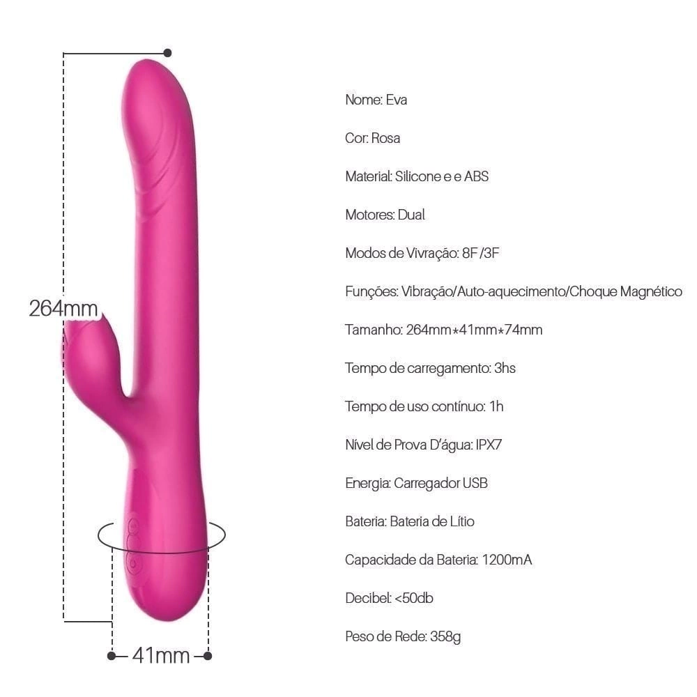 Vibrador Eva Ultra Inteligente e Multi Funcional, desenvolvido com tecnologia de ponta, possui sistema de aquecimento e vibrações via aplicativo.