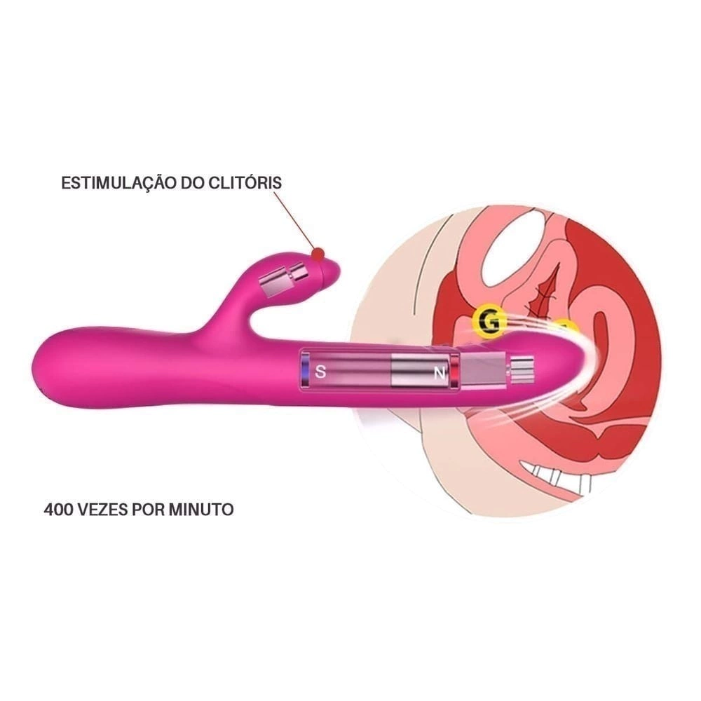 Possui 2 estimuladores com 2 motores separados, um em sua ponta e outro clitoriano.